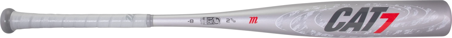 Shine at the plate with the CAT7. The 2020 Marucci CAT7 -8 Senior League Baseball Bat is built to explode with unrelenting fury, now in a new silver color way. The precision-balanced barrel and one-piece alloy design offer a clean, consistent swing to control the wrath of this ultra-responsive rainmaker.