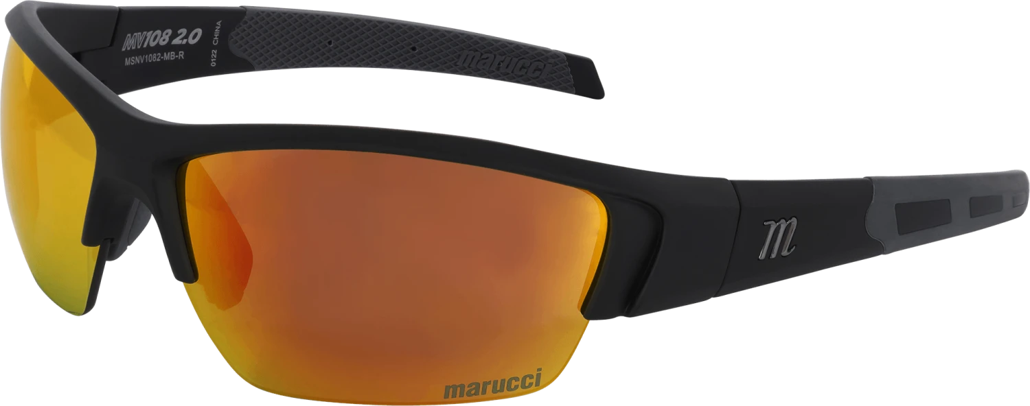 Marucci MV108 2.0 performance sunglasses are made specifically for on-field use with lenses produced by Carl Zeiss Vision, engineered to enhance clarity, improve visibility, and balance color perception to create higher performing on-field sunglasses.