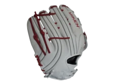 Miken Pro Series 13.5″ Slow Pitch Fielding Glove – White/Scarlet/Navy: PRO135WSN